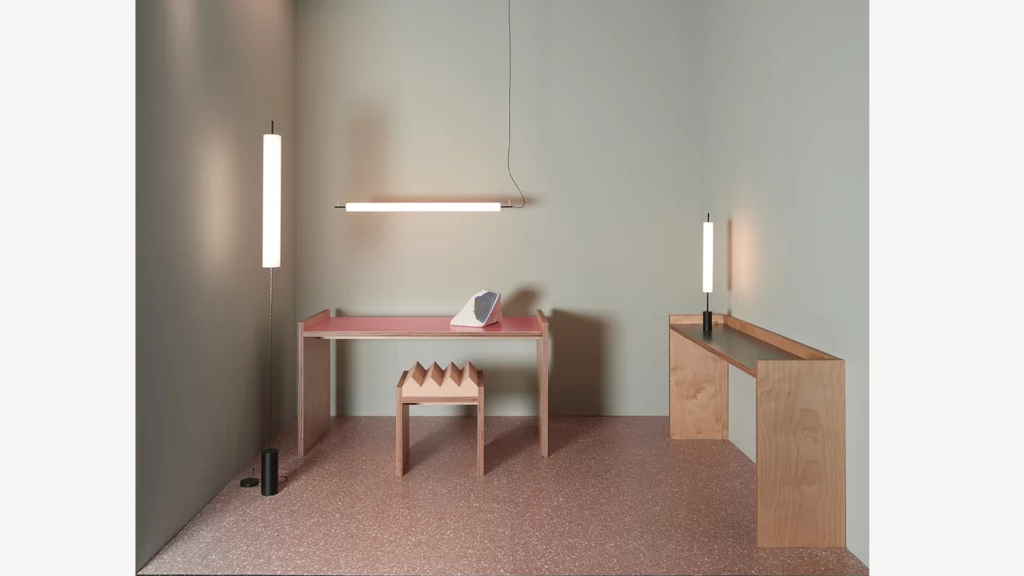 La famiglia di lampade Hono è composta da diverse interpretazioni: la versione da terra — il pezzo originale da cui si è evoluta l’intera collezione — la versione da tavolo e il modello a sospensione verticale, che richiamano entrambi l’estetica e la tecnologia della lampada da terra.